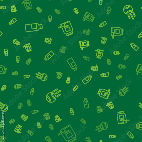 Set line Fitness shaker, Tennis ball and Sports nutrition on seamless pattern. Vector