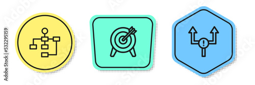 Set line Hierarchy organogram chart, Target and Arrow. Colored shapes. Vector