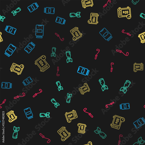 Set line Jam jar, Blender, Microwave oven and Kitchen ladle on seamless pattern. Vector