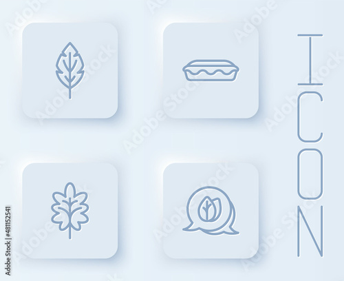 Set line Leaf, Homemade pie, and . White square button. Vector
