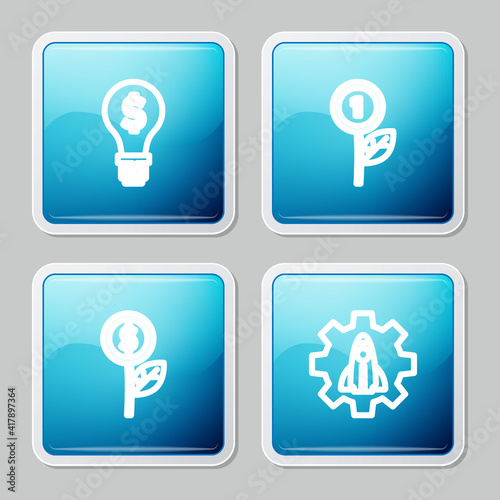 Set line Light bulb with dollar, Dollar plant, and Startup project concept icon. Vector.