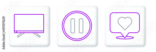 Set line Like and heart, Smart Tv and Pause button icon. Vector