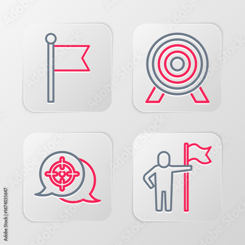Set line Man holding flag, Target, and Flag icon. Vector