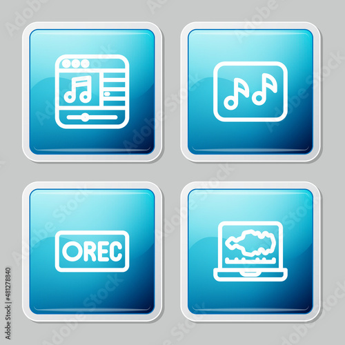 Set line Music player, note, tone, Record button and Sound audio recorder icon. Vector