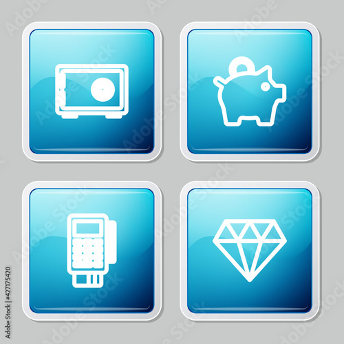 Set line Safe, Piggy bank, POS terminal with credit card and Diamond icon. Vector