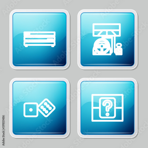 Set line Video game console, Racing simulator cockpit, Game dice and Mystery random box icon. Vector