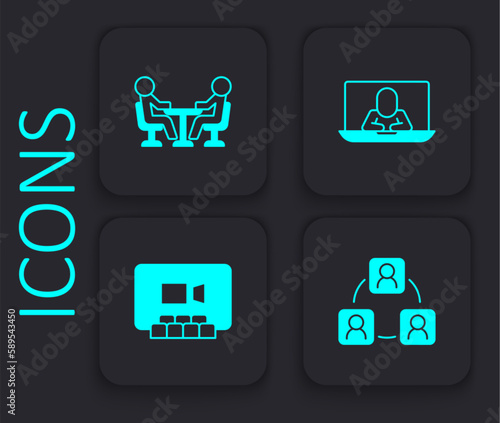 Set Meeting, Video chat conference and icon. Black square button. Vector