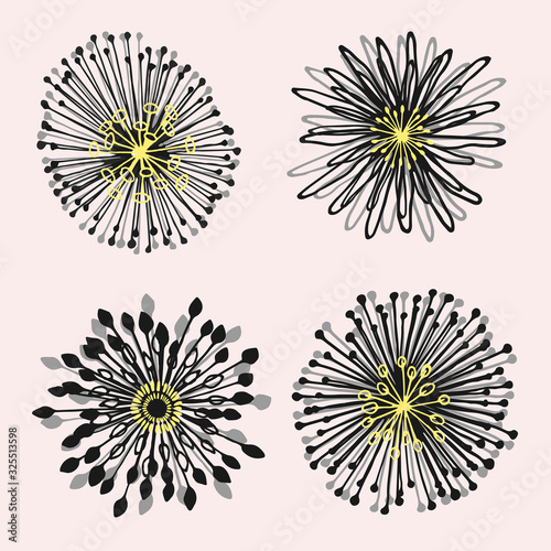 set of 4 abstract flower shapes