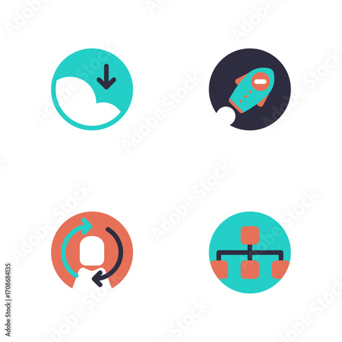 Set of 4 circular icons depicting business and technology concepts