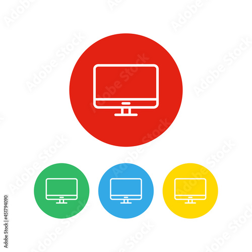 Set of 4 colorful icons. Desktop computer or TV icon with white background