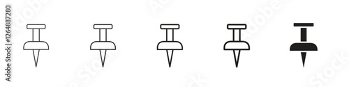 Set of 5 pixel perfect Thumbtack icon with 1 unexpanded, 1 silhouette, Thumbtack icon symbolizing pinning, notes and organization, for reminders, office and planning-related designs