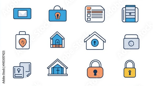 Set of 60 Security web icons in line style. Guard, cyber security, password, smart home, safety, data protection, key, shield, lock, unlock, eye access. Vector illustration.