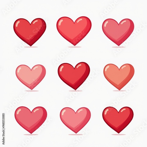 Set of 9 Colorful Illustrated Hearts for Valentine's Day and Romantic Designs