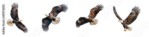 Set of Bald Eagle Flying Isolated on Transparent Background