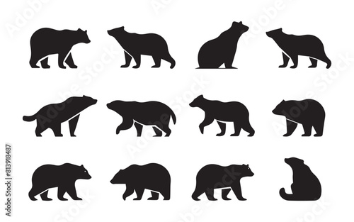 Set of bear silhouettes. Vector black bear illustration isolated on a white background.