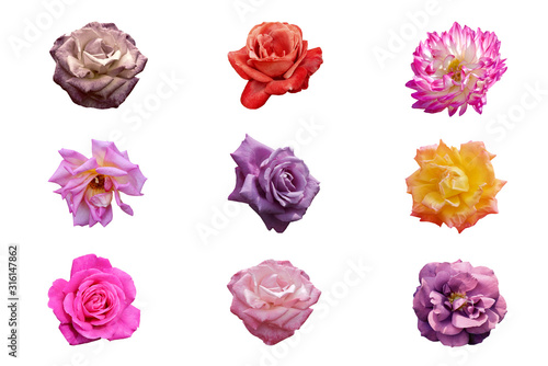 Set of beautiful rose on white