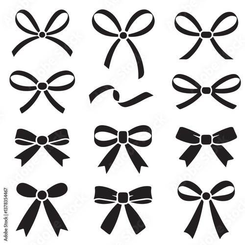 set of black vector various ribbon and bows silhouettes for graphic resources