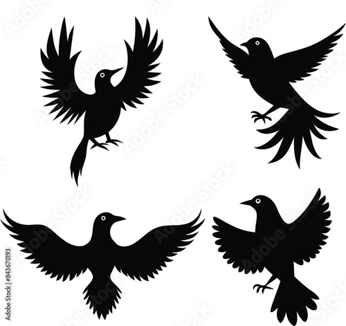 set of black bird silhouettes vector elements vector