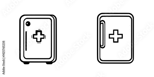 Set of black icons representing a medical cabinet designed for first aid supplies and medical items, suitable for various applications