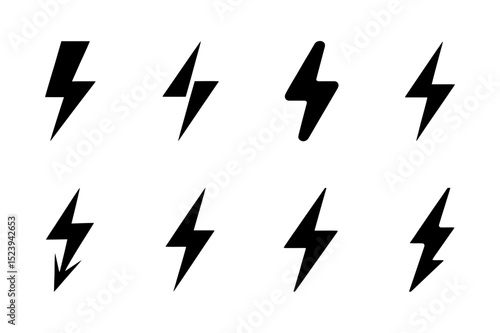 Set of black lightning bolt power energy icons art