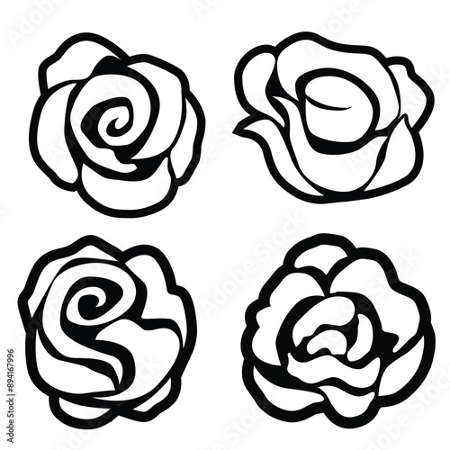Set of black roses isolated on white background. Hand drawn vector illustration.