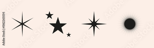 Set of blinking sparkle, star, sun shape. Abstract explosion, glow and blink effects for festive party design. Twinkle glitter and flash graphic elements. Isolated vector illustrations.