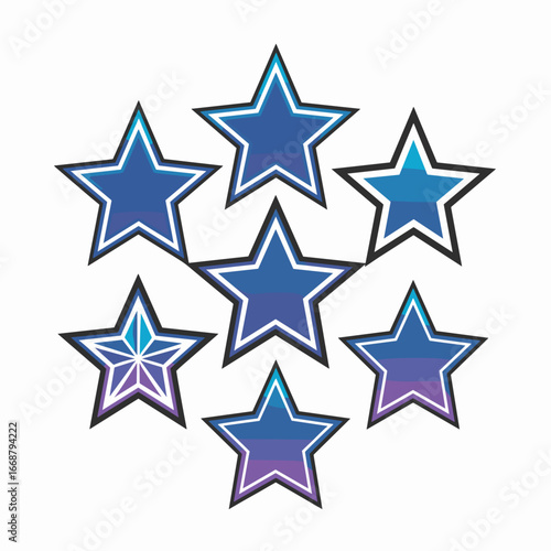 Set of blue 5-pointed stars in solid outline and gradient styles arranged in a circle