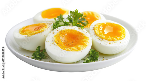 Set of Boiled eggs on plate isolated on white background