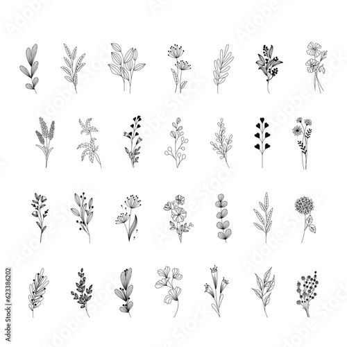 Set of branch and leaves collection. Floral hand drawn vintage set. Element design for greeting cards and invitations of the wedding, birthday