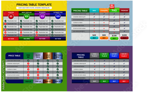 set of business price plan or comparsion table price chart or banner of tariff plan concept. eps 10 vector - easy to modify