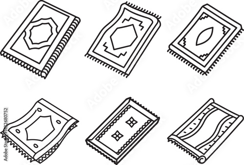 set of carpet line art, black outline, vector and illustration, coloring book page line art drawing