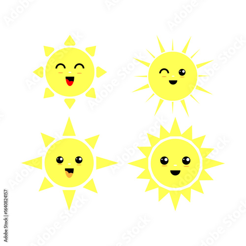 Set of cartoon cute smiling suns. Vector illustration isolated on white background.