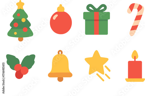 Set of Christmas flat icons on white background