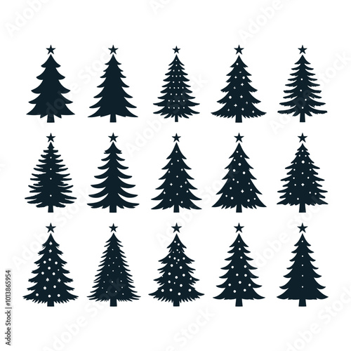 set of Christmas tree silhouette