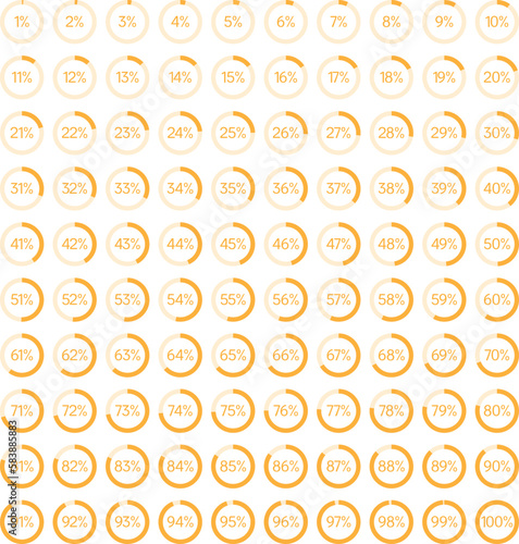Set of circle percentage diagrams (meters) from 0 to 100 ready-to-use for web design, user interface (UI) or infographic - indicator with yellow