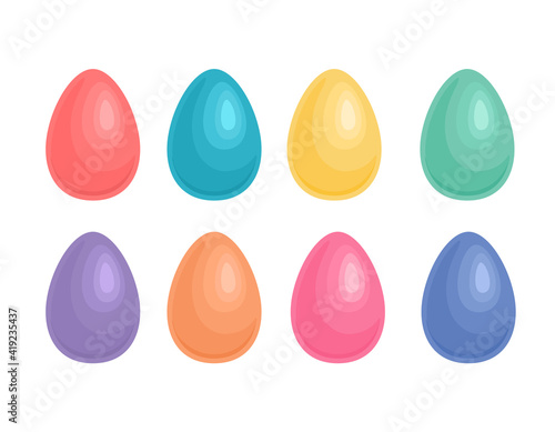 Set of colored cartoon flat Easter eggs isolated on white. Vector illustration.