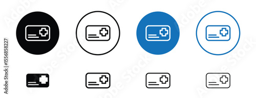 set of colored pixel perfect Health card icon 1 unexanded, 1 silhouette. Health card icon illustrating medical identification and insurance.