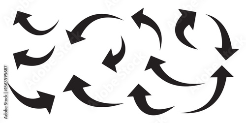 Set of curved arrows isolated on white background. Curved arrows, hand drawn curved arrows. Set long black curve arrow icon vector . black curve arrow icon set. long arrow icon set. curve arrow vector
