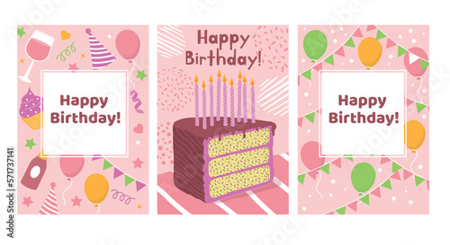 Set of cute birthday greeting cards