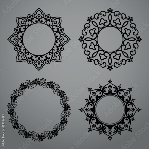Set of decorative frames Elegant vector element for design in Eastern style, place for text. Floral black and gray borders. Lace illustration for invitations and greeting cards