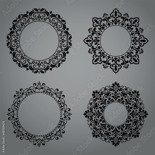 Set of decorative frames Elegant vector element for design in Eastern style, place for text. Floral black and gray borders. Lace illustration for invitations and greeting cards