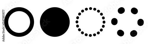 Set of Different Circles icon on transparent background, flat line design, vector illustration
