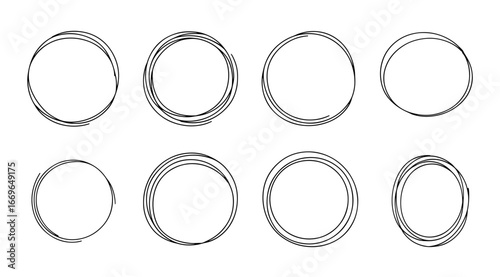 set of eight thin line handmade circles