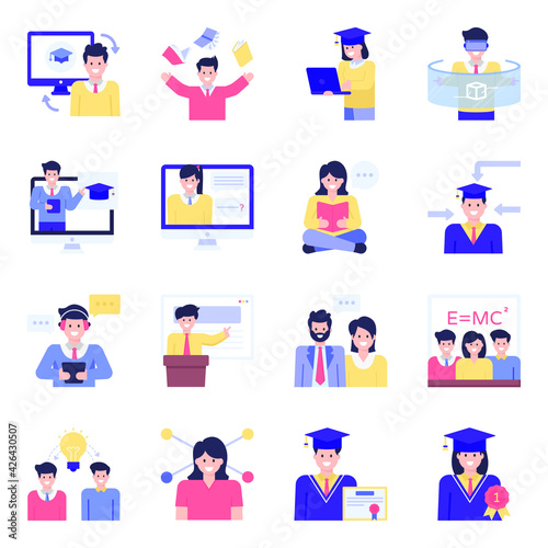 Set of Elearning Flat Character Vectors