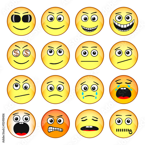 Set of Emoticons. Funny Faces Show Different Emotions.