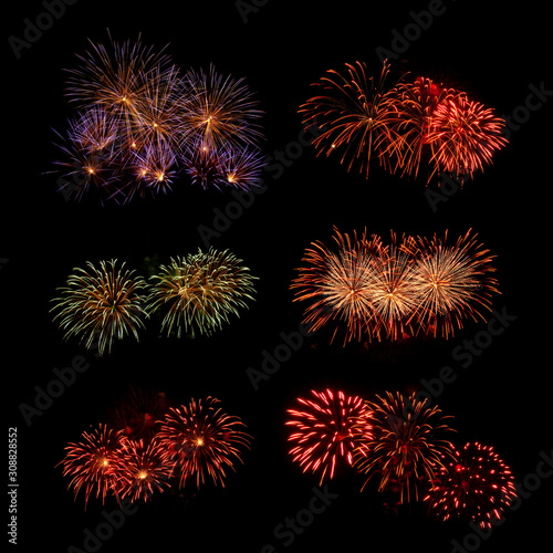 Set of Fireworks Isolated on Black Background
