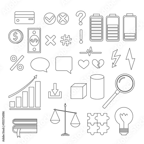Set of flat outline business icons. Black and white line clipart