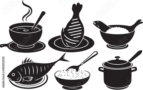 set of food and drinks