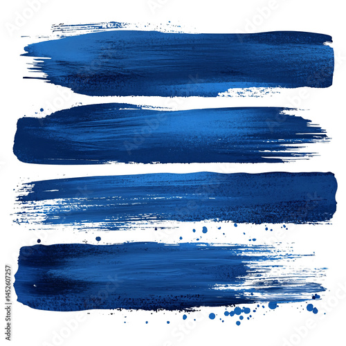 Set of four different blue ink or paint strokes on transparent background. grunge style. abstract strokes, marks, spots and splashes. design element. chaotic strokes