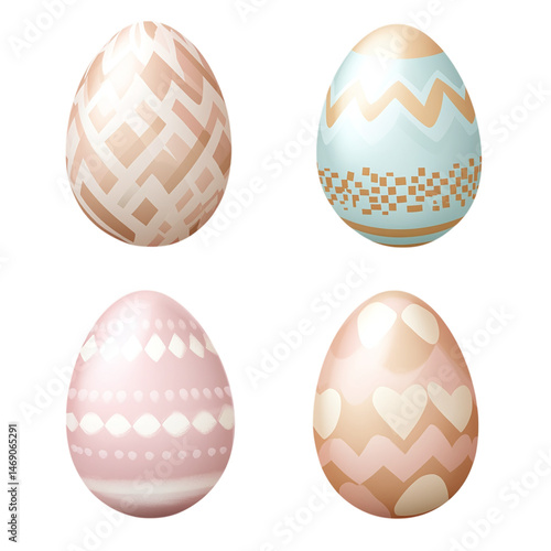 Set of Four Easter Eggs in Pastel Colors – Decorative Hand-painted Easter Eggs
